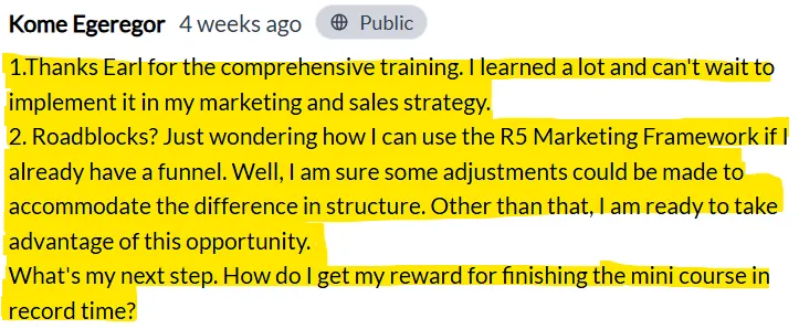 Plus, you get ongoing group support to assist you with building your business using rewards should you get stuck or have a question while implementing our R5 Marketing Framework by yourself.