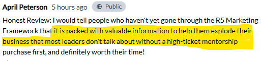 I hope you see the same (or even better) results for yourself once you implement the R5 Marketing Framework.